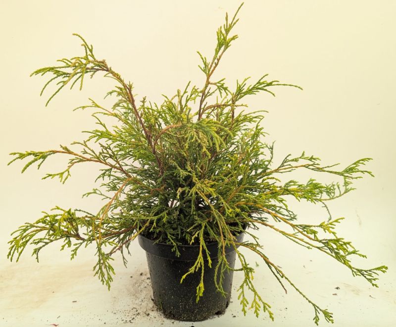 ⭐ Atrakcyjny pokrój — jego długie przewieszające się sznurowate pędy nie tworzą regularnego półkola, ale wypiętrzają na różnych wysokościach, nadając roślinie ciekawy, przykuwający wzrok kształt pagórka.