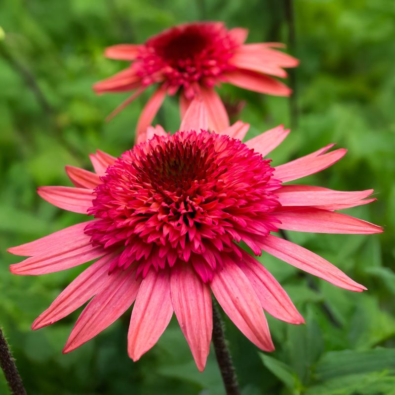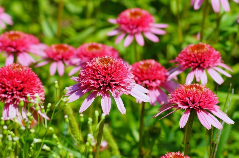 ⭐ Dzikie piękno – Jeżówka Raspberry Truffle świetnie pasuje do innych roślin, takich jak rudbekie, astry czy trawy ozdobne, tworząc naturalne i dzikie zakątki w ogrodzie.
