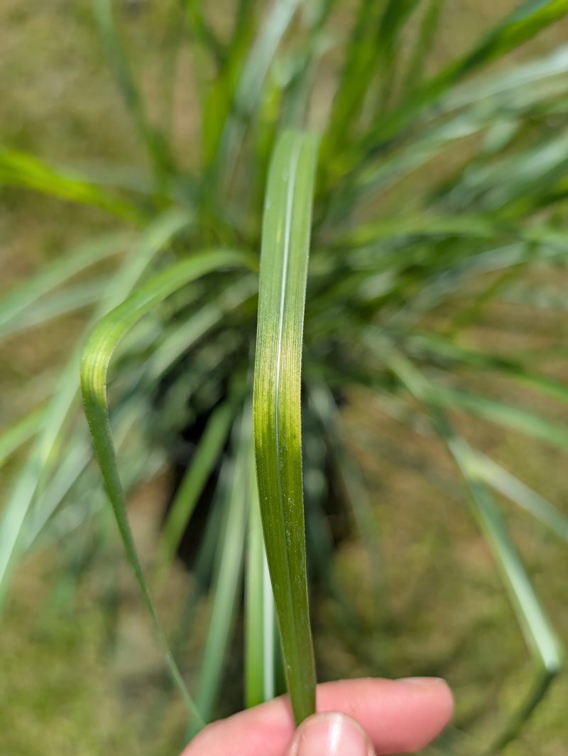 ⭐ Liście w paski jak u Zebrinusa – Miskant Punktchen ma liście zielone w złociste paski, które wyglądają jak drobne cętki. Paski pojawiają się co kilka centymetrów i są bardziej równo rozmieszczone niż u Zebrinusa.