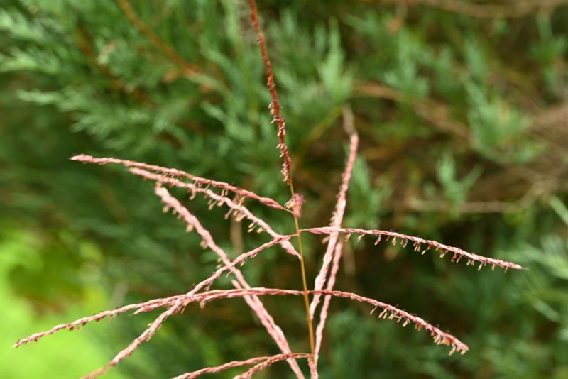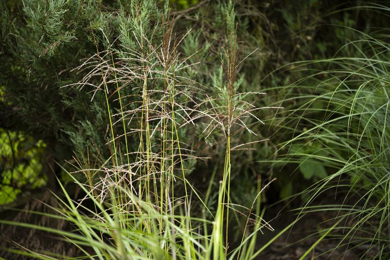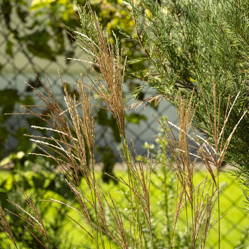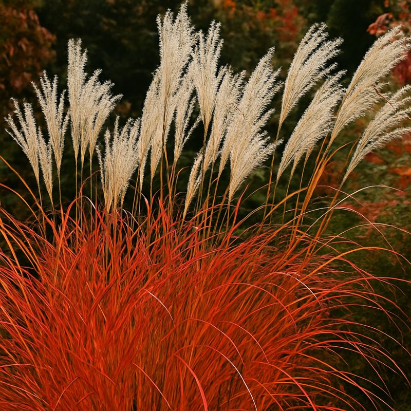Zmienna — jej wąskie delikatnie przewieszające się liście zmieniają kolor od zieleni wiosną po bordo jesienią.