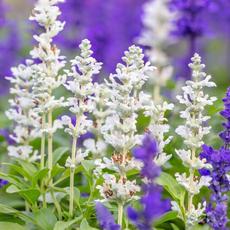 ⭐ Elegancki wygląd — szałwia omszona Salute White charakteryzuje się pięknymi, białymi kwiatami, które dodadzą elegancji każdemu ogrodowi.